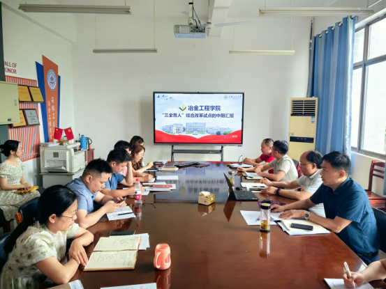 于秀山校区冶金楼南324会议室举行“三全育人”综合改革试点中期汇报。院党政领导、党支部书记、系室主任和全体辅导员参加了此次活动,活动由院党委副书记、院长王海川主持。