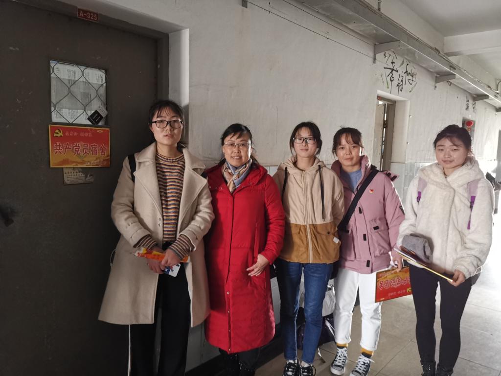 冀秀芝一行每到一个党员宿舍,询问学生党员在宿舍日常表现情况,并对其他同学进行入党教育,激励其他同学通过自身努力,向党组织靠拢。冀秀芝为每个党员宿舍进行挂牌,并合影留念。