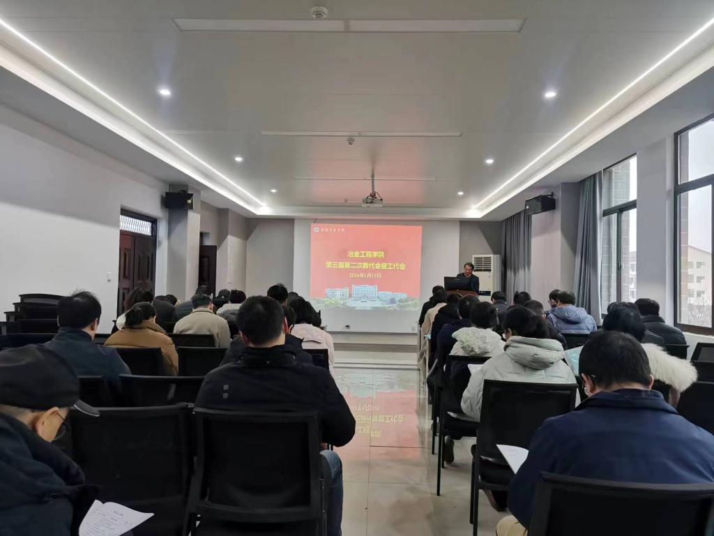 第三届教职工代表大会第二次会议在冶金楼南302会议室隆重召开。学院党政领导和大会正式代表、列席代表参加了会议,会议由院党委副书记、副院长钱春梅主持。