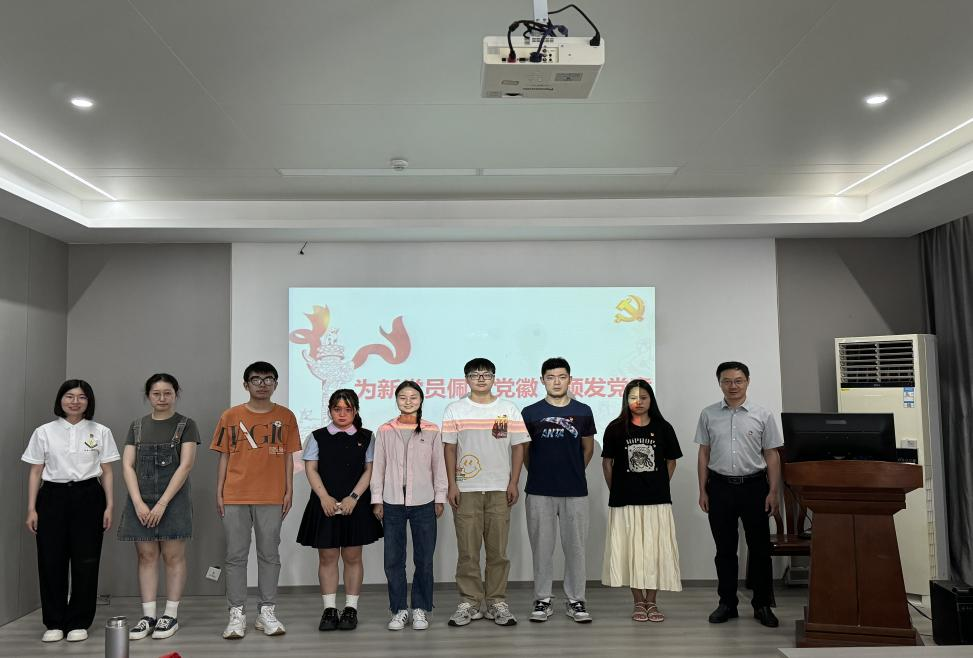 “我志愿加入中国共产党,拥护党的纲领,遵守党的章程……”全体党员庄严宣誓,声音铿锵有力,誓言深深植根于每一位党员的心中。随后,学院领导为新发展党员佩戴党员徽章并颁发党章。