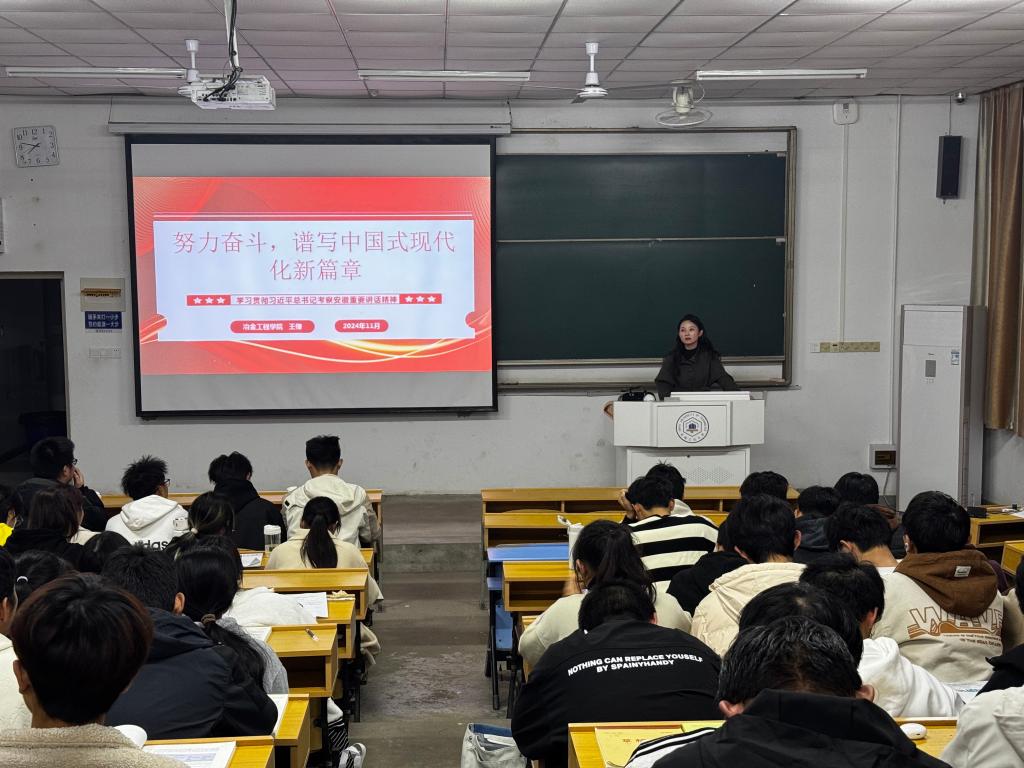为深入学习贯彻习近平总书记考察安徽重要讲话精神,11月25日,校第五届辅导员宣讲团成员王倩开展学习习近平总书记考察安徽重要讲话精神宣讲,ACG社区 2024级新生团员参加了此次宣讲。