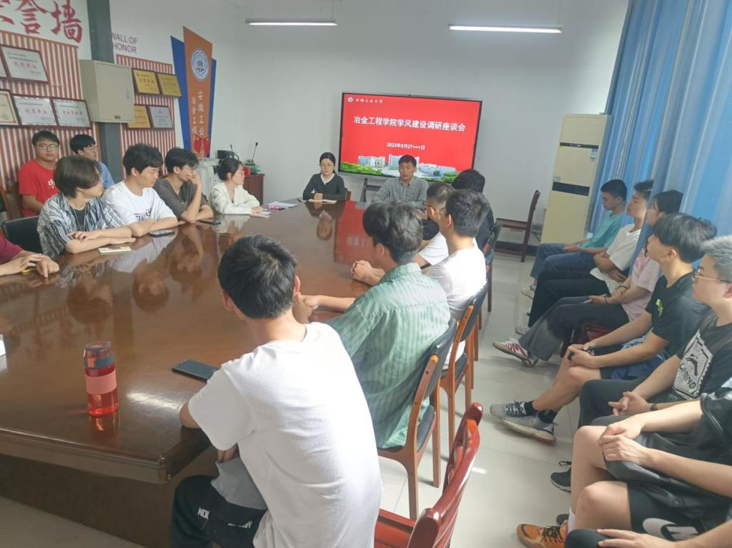 于5月27日上午在冶金楼324会议室召开学风建设学生调研座谈会。院党委副书记、副院长杨建,各年级辅导员,各班班长、学习委员参加了座谈会。