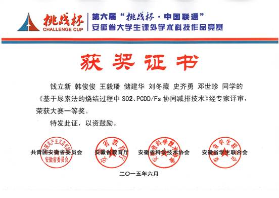 龙红明教授指导的《基于尿素法的烧结过程中SO2、PCDD/Fs协同减排技术》和常立忠副教授指导的《新型旋转结晶器电渣重熔法》2件作品分获一等奖和二等奖,一等奖作品将代表学校推荐参加国家比赛。
