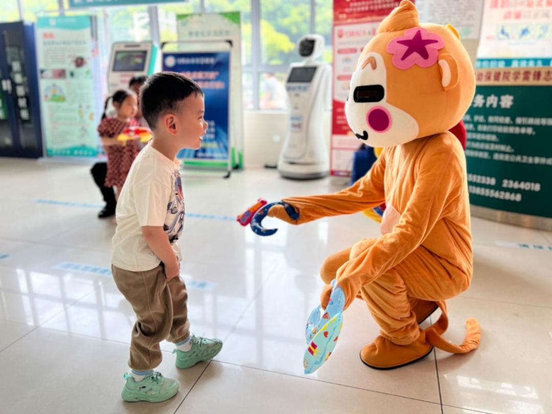 活动现场,志愿者们以活泼可爱的卡通形象亮相,为医院里的小朋友们送去精心准备的礼物,用真情的陪伴为孩子们度过了一个温馨而难忘的节日。