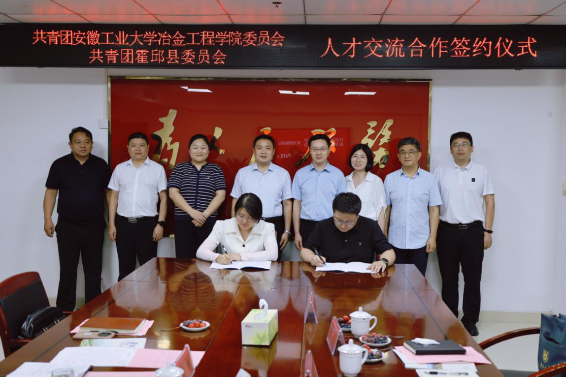 活动中,学院与霍邱县举行了人才交流合作签约仪式,并进行“安徽工业大学大学生社会实践基地”授牌。