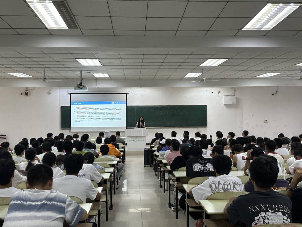 于佳山校区教三南103教室召开2024级新生学籍管理教育。2024级辅导员王倩担任主讲,全体新生参加了此次活动。