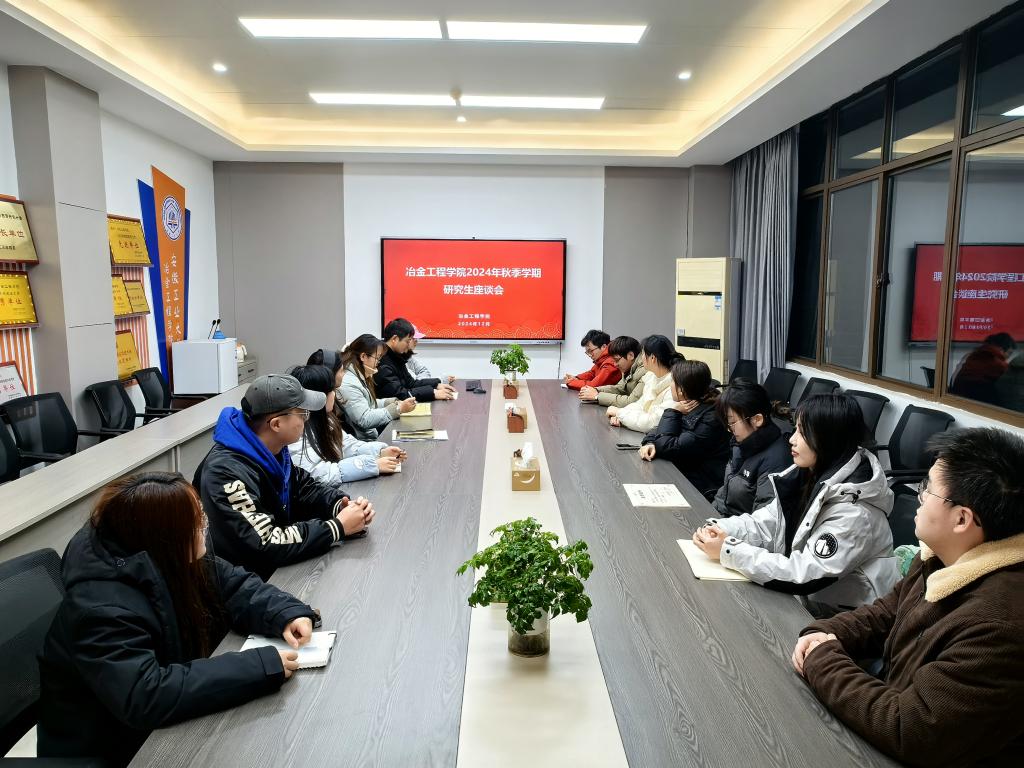 于秀山校区冶金楼南324会议室,召开2024年秋季学期研究生座谈会。各班级研究生代表参加了此次座谈会,座谈会由辅导员吴巍主持。