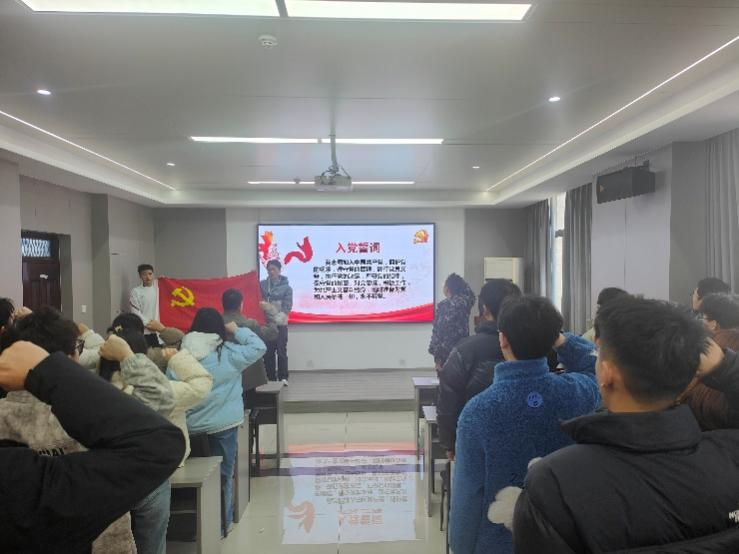 于冶金楼南302会议室举行2024年下半年新发展党员入党宣誓暨转正党员重温入党誓词仪式。学院党委委员、副院长岳强、各党支部书记、全体新发展党员以及转正党员参加宣誓仪式。仪式由支部书记李亚飞主持。
