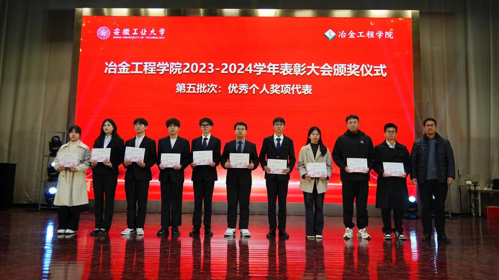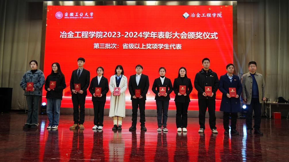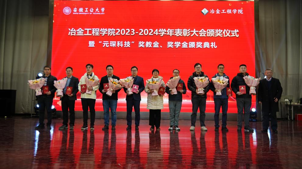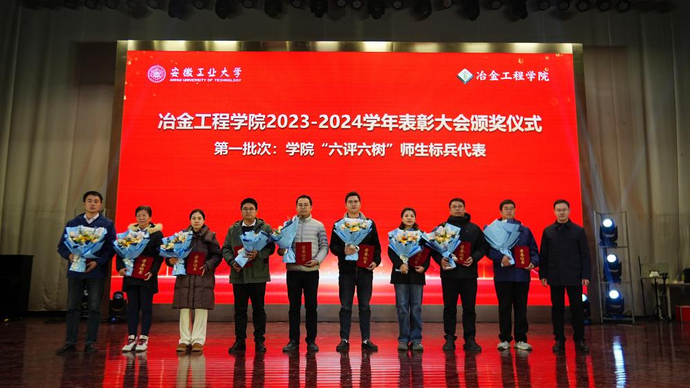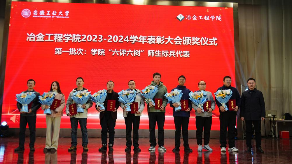 表彰大会在庄严的国歌声中拉开序幕。岳强宣读了学院表彰通报,优秀班主任代表高翔鹏老师、先进集体代表冶215班黄嘉奇同学、先进个人代表型215班张凤举同学依次代表受表彰集体和个人发言。大会分批次为教书育人标兵、科技创新标兵、管理服务标兵、立德树人标兵、优秀班主任、张大明奖教金、元琛奖教金、优秀班级、文明宿舍、科技竞赛获奖团队、优秀学生干部、三好学生、优秀学生奖学金等集体和个人颁发了荣誉证书,学生代表为获奖老师献上了鲜花。