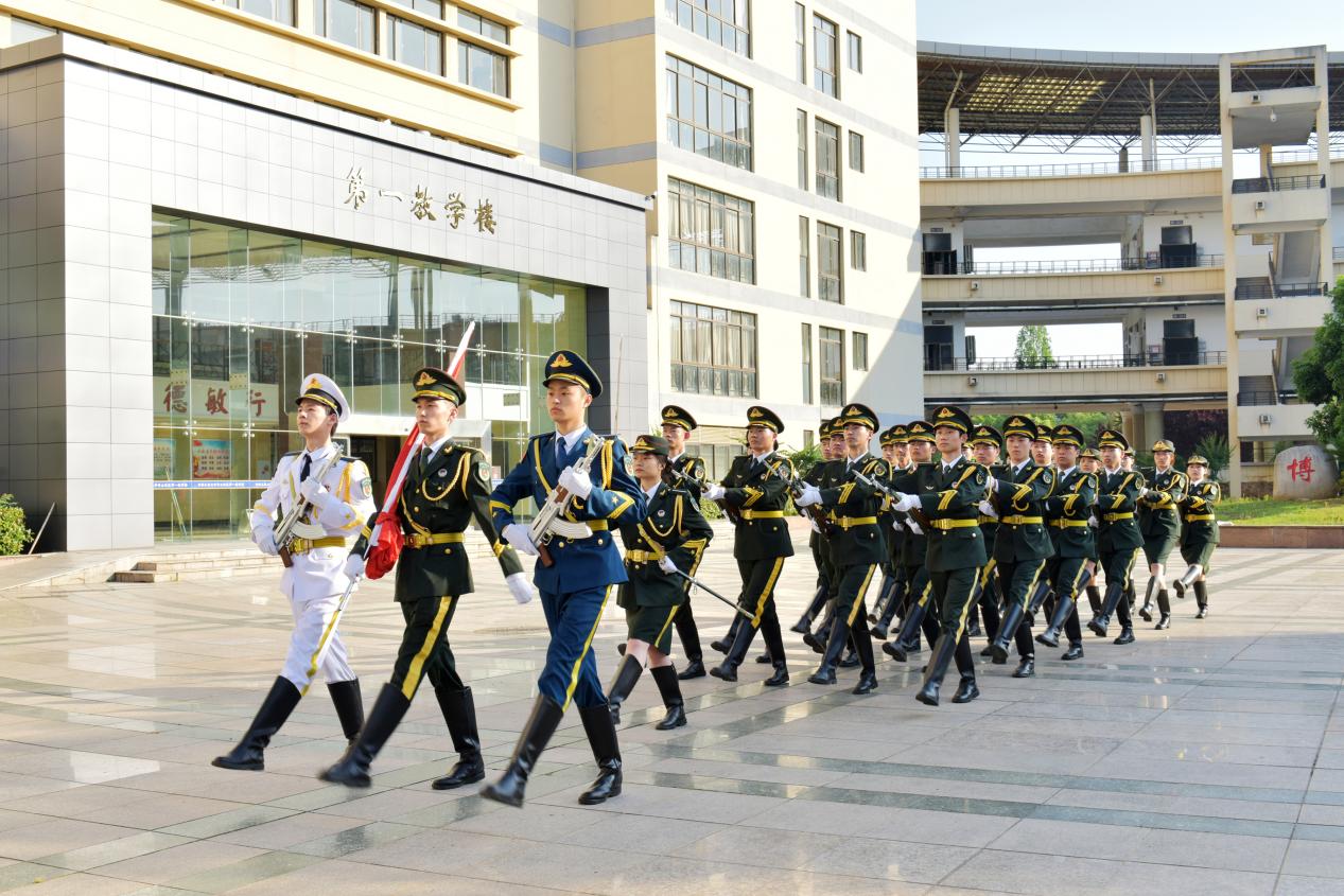 7点整,国旗护卫队的队员们迈着铿锵有力的步伐,护送着鲜艳的五星红旗走向升旗台,在激昂嘹亮的国歌声中,五星红旗迎着朝阳缓缓升起,全体师生肃立致敬,行注目礼,心中满是对祖国的无限热爱与崇高敬意。