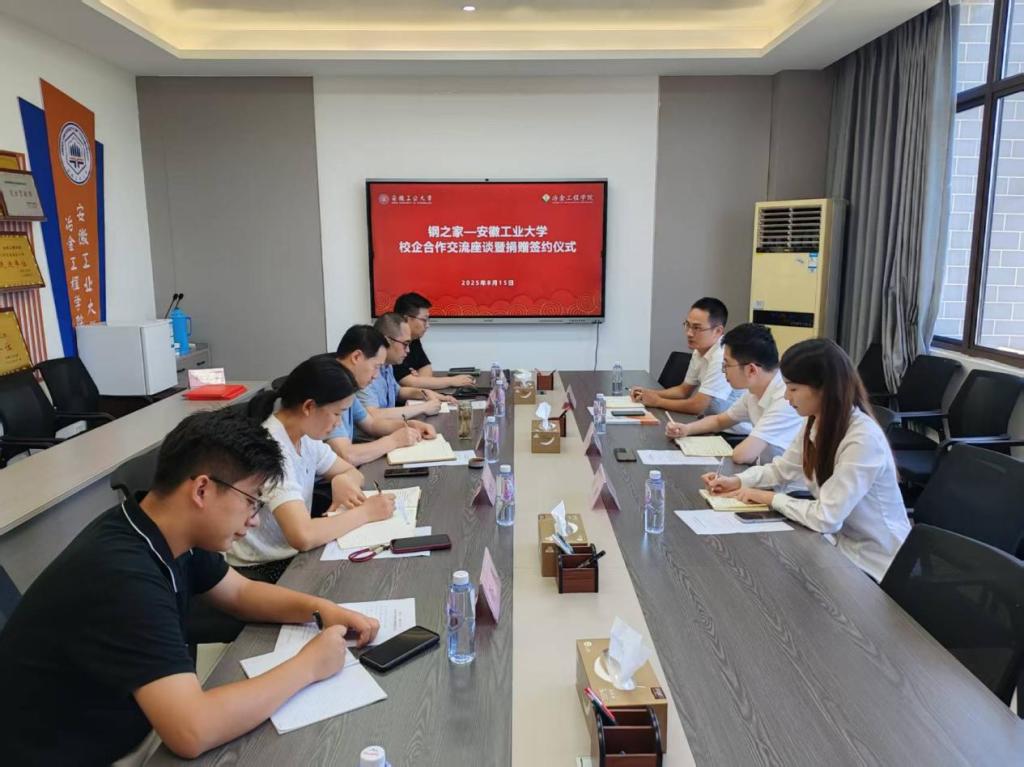 始终秉持“钢铁报国”的办学传统,致力于服务国家冶金工业发展,希望通过与钢之家网站的深度合作,进一步提升学院的社会服务能力与行业影响力。随后,吴运豪介绍了企业的发展历程与战略布局。他强调,钢之家网站作为国内领先的钢铁行业信息服务平台,始终关注行业人才培养与技术创新,期待通过与安徽工业大学的深入合作,共同推动钢铁行业的数字化转型和高质量发展。学院团委书记张夏汇报了学院与钢之家往期合作成果。双方围绕人才联合培养、产学研一体化发展等未来合作方向展开深入探讨。