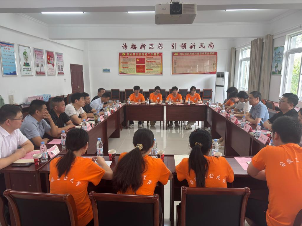 社会实践队的到来表示欢迎和支持。路壮志介绍了学校、学院的发展历程、学科特色及育人成效,希望队员们珍惜实践机会,发扬吃苦耐劳精神、积极投身乡村振兴,在实干中磨砺成长。社会实践队队长张郑宇汇报了社会实践开展情况,与会人员围绕校地合作、实践育人等话题展开深入交流。