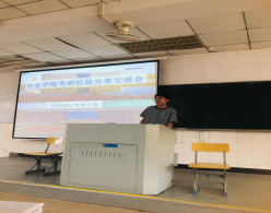 于6月14日在东教一阶101召开2019级考研经验交流会。学院党委副书记、副院长杨建,2019级辅导员及2019级全体学生参加了会议,会议由辅导员张夏主持。
