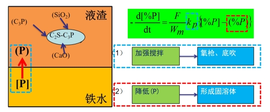脱磷是炼钢的主要任务之一,2022 年我国粗钢产量约为12亿吨,为了脱磷产生的炉渣约为12000 万吨(平均约为100kg/t 钢),消耗6000 万吨以上石灰,众所周知,炼钢用石灰是通过石灰石(不可再生资源)煅烧而成,其煅烧过程中会放出大量的CO2,并且由于脱磷渣中存在着大量未反应的自由CaO,炉渣很难回收利用,造成了极大的资源浪费。并且随着钢铁行业的飞速发展,世界范围内高品位优质铁矿石资源逐渐枯竭,以储量丰富、成本低廉的高磷铁矿为代表的低品位复杂铁矿资源的开发利用逐渐受到关注,高磷铁矿的使用必然会使铁水中磷含量增加,采用高磷铁水冶炼会加重炼钢脱磷负担,使石灰消耗与渣量进一步增加。因此,开发石灰消耗少、渣量少的脱磷技术至关重要。日本研究工作者从2006年开始研究固液共存炉渣脱磷技术,并约于2014年成功运用于工业实践,在实现高效脱磷的同时,大幅降低了石灰消耗及渣量。低碳冶金研究所从2012年开始研究复合相(固液共存)炉渣脱磷技术,取得了显著进展,并将该技术成功应用于低成本炼钢工艺中,为企业带来了显著的经济效益。