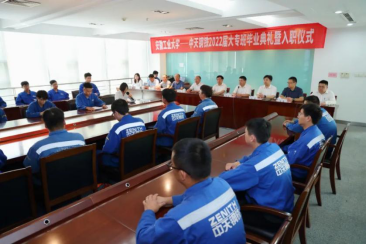 7月13日上午,安徽工业大学2022届中天钢铁大专班学生毕业典礼暨入职仪式在江苏省常州市中天钢铁集团行政大楼三楼第一会议室举行。校党委书记陆林、副校长王先柱、中天钢铁副总裁赵金涛及党办校办、教务处、ACG社区