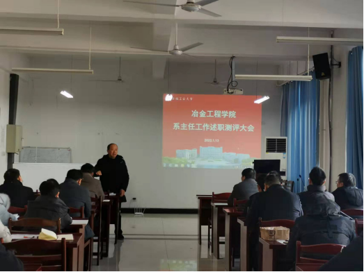 于秀山校区冶金楼南302会议室召开2021年度系主任工作述职测评会。学院党政领导、纪委委员、各支部书记、系主任、科级干部、教师代表和学生代表参加了此次会议,会议由院党委书记韦良德主持。