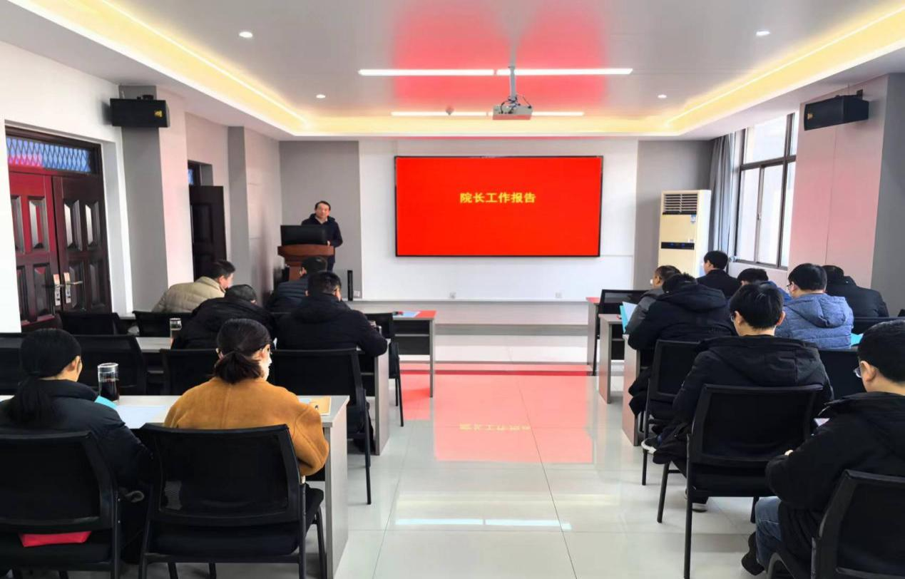 会议在雄壮的国歌声中拉开序幕。院长龙红明作学院工作报告,他全面回顾了过去一年学院在学科建设、教学科研、人才培养、社会服务、党建与思想政治工作等方面取得的成绩,分析了学院发展中存在的困难和不足,提出了改革创新思路,展望了未来发展蓝图。工会主席张龙作了工会工作报告和工会财务工作报告,详细介绍了工会在参与学院民主管理、维护教职工权益、促进学院和谐发展等方面所做的工作。办公室副主任汪明霞对学院年度财务工作报告和二次绩效分配方案进行了详细解读。