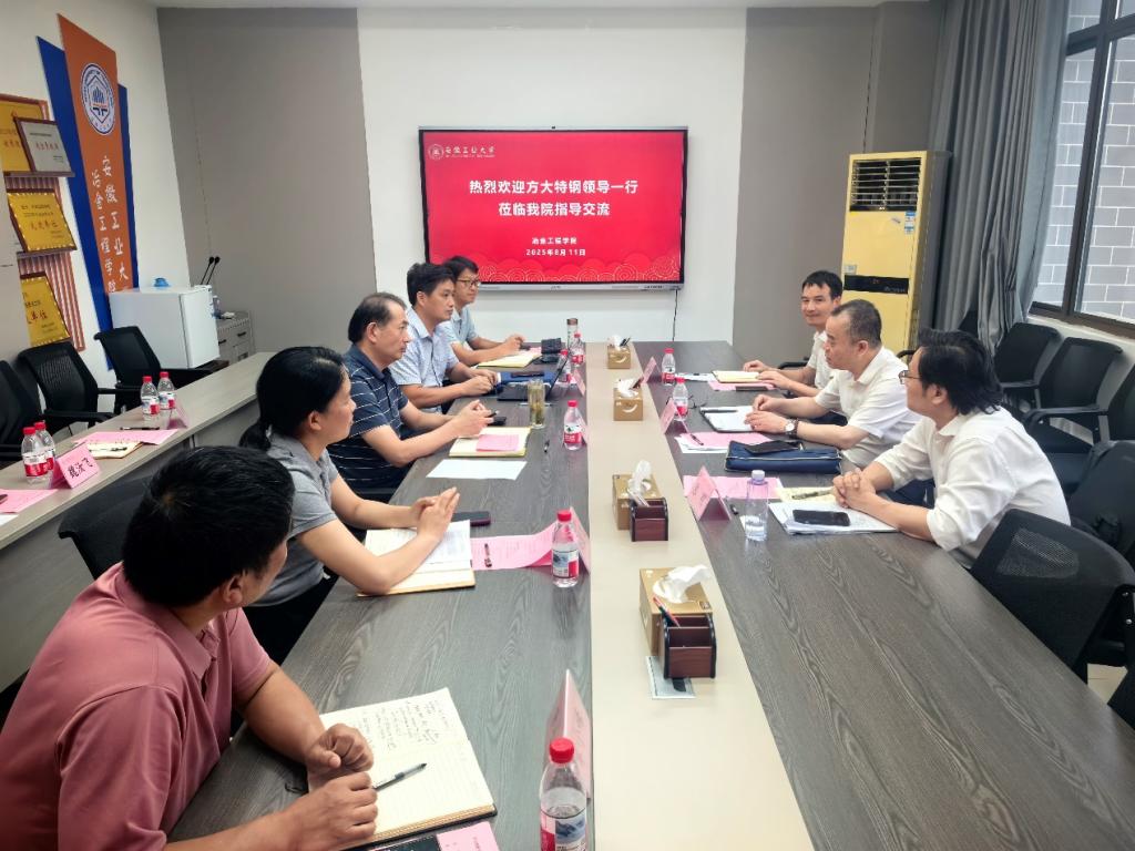 8月11日下午,方大特钢科技股份有限公司党委副书记邓斌、技术中心副主任陈明、人力资源部综合配置科科长罗嗣国一行来校开展校企合作交流。研究生院(研究生工作部)常务副院长(部长)、学科建设处处长、ACG社区