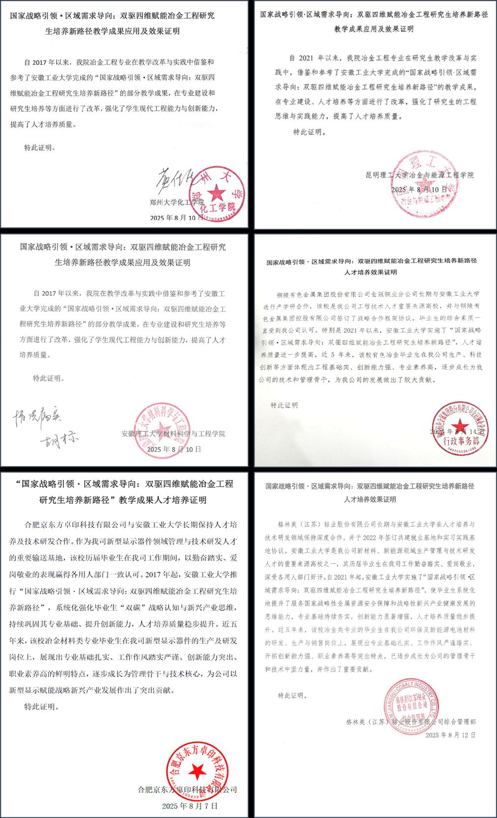 安徽工业大学冶金工程专业聚焦国家战略金属和战略新兴产业,围绕区域经济发展的人才需求,积极应对新技术、新产业变革,开展新时期冶金工程研究生人才培养的改革探索,经历4年实践检验,形成了“国家战略引领·区域需求导向 双驱四维赋能冶金工程研究生培养新路径”这一成果,对冶金工程及相关专业的研究生人才培养具有重要示范作用。