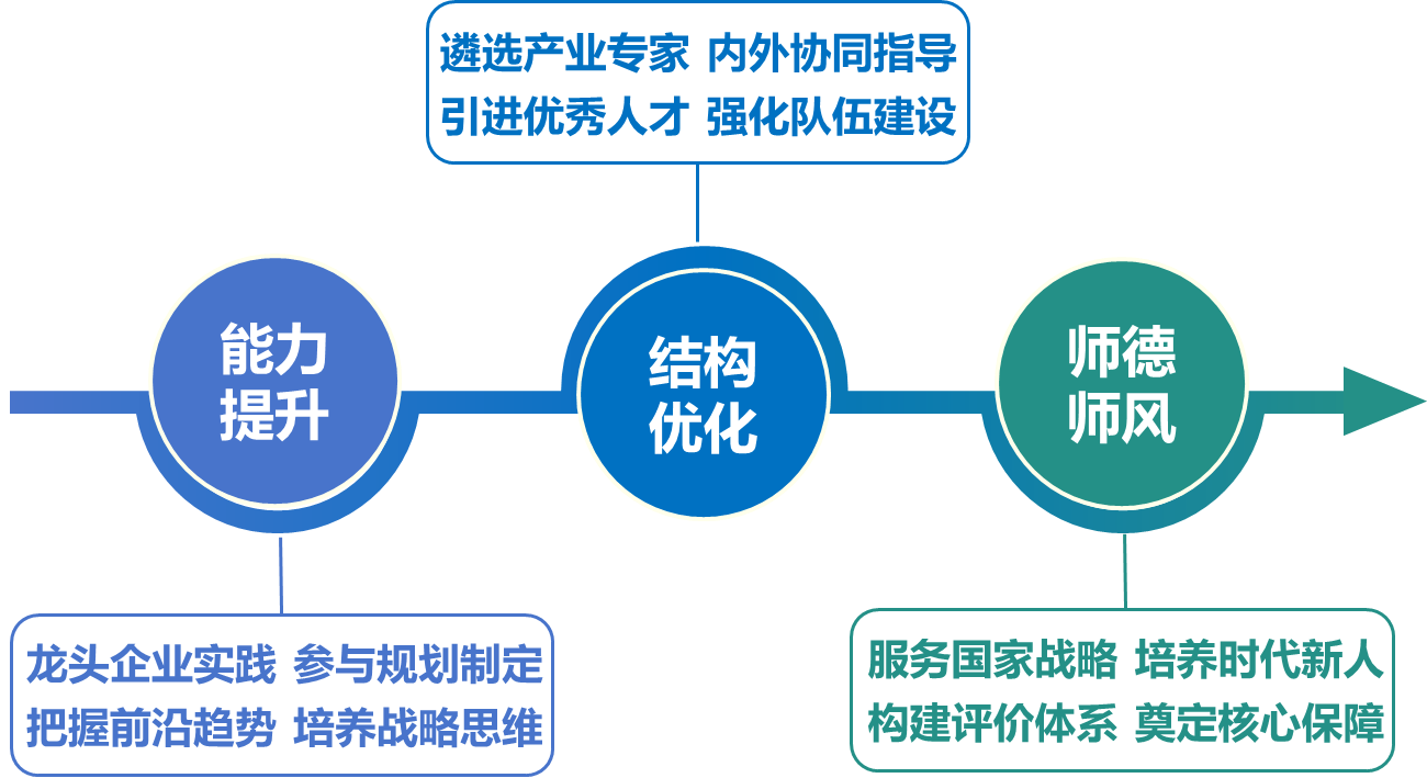 (4)师资结构创新:系统性地解决了传统师资在支撑国家战略导向型人才培养中存在的知识结构滞后、产业经验不足、协同育人乏力等关键瓶颈,以学术与产业双栖、创新与育人并重为思路构建师资建设新范式。通过教师战略能力提升、校企导师协同指导、优秀青年人才引进、强化师德师风建设这一途径,打造了一支兼具深厚学术造诣、丰富产业经验、敏锐战略眼光和高尚育人情怀的新型研究生导师队伍。