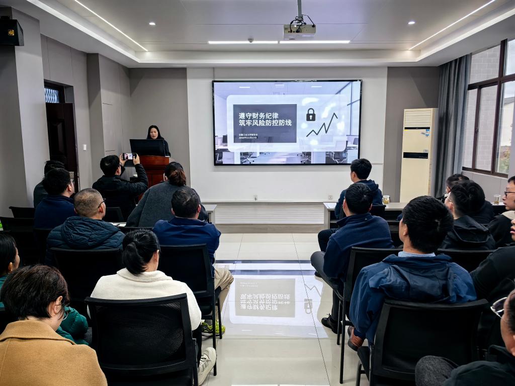 财务处副处长储银双作《遵守财务纪律,筑牢风险防控线》专题报告。她结合高校工作实际,聚焦公务接待、会议活动、办公用房、招标采购、资产管理、科研经费和差旅费用等关键环节的财务纪律要求进行系统讲解,通过政策阐释与典型案例剖析,深入阐释了严守财务纪律、筑牢风险防线的重要性。