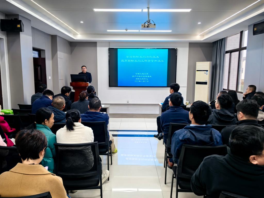 资产与实验室管理处副处长张满堂以《学习招标采购法规政策,提高招标采购工作质量和效率》为题,系统阐释招标采购基础知识和学校新修订的采购管理制度,深入分析当前采购领域的风险隐患与突出问题,为学院教师规范、高效开展采购工作提供了实用指导。