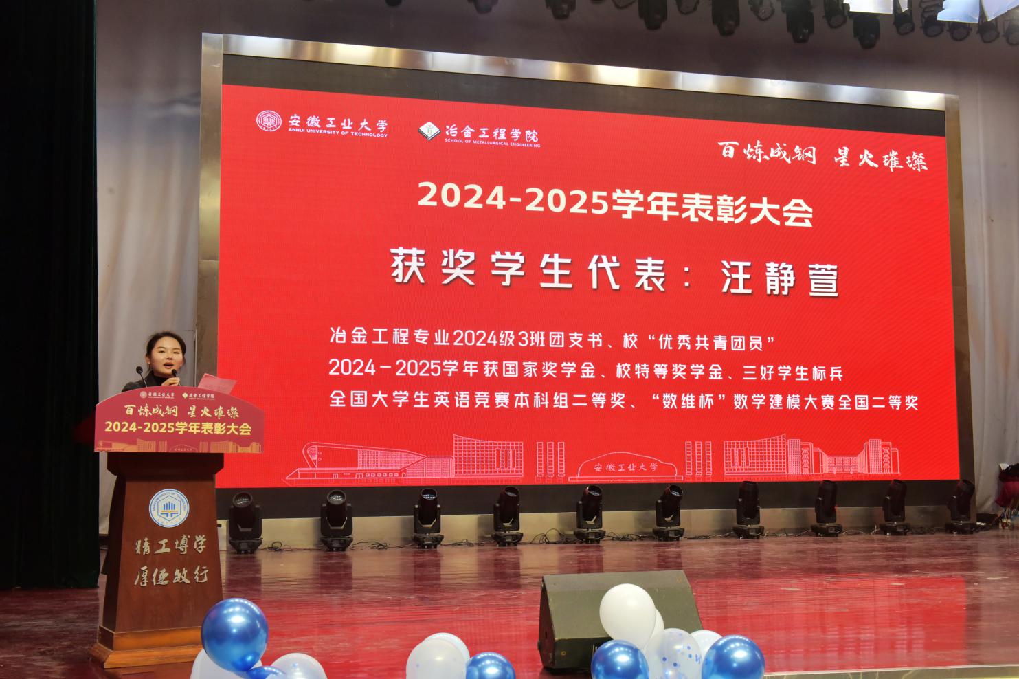 学院党委书记路壮志宣读了表彰通报。校先进班级型223班的黄诗云、张天乐讲述了班级建设的事迹与成果;国家奖学金获得者、冶243班汪静萱分享了从懵懂新生蜕变为专业第一的成长感悟;获奖教师代表、冶金工程系钱立新深情回顾了自己坚守育人初心的奋斗经历。与会领导为获奖先进集体和个人颁发了荣誉证书,学生代表向获奖老师献花致敬。