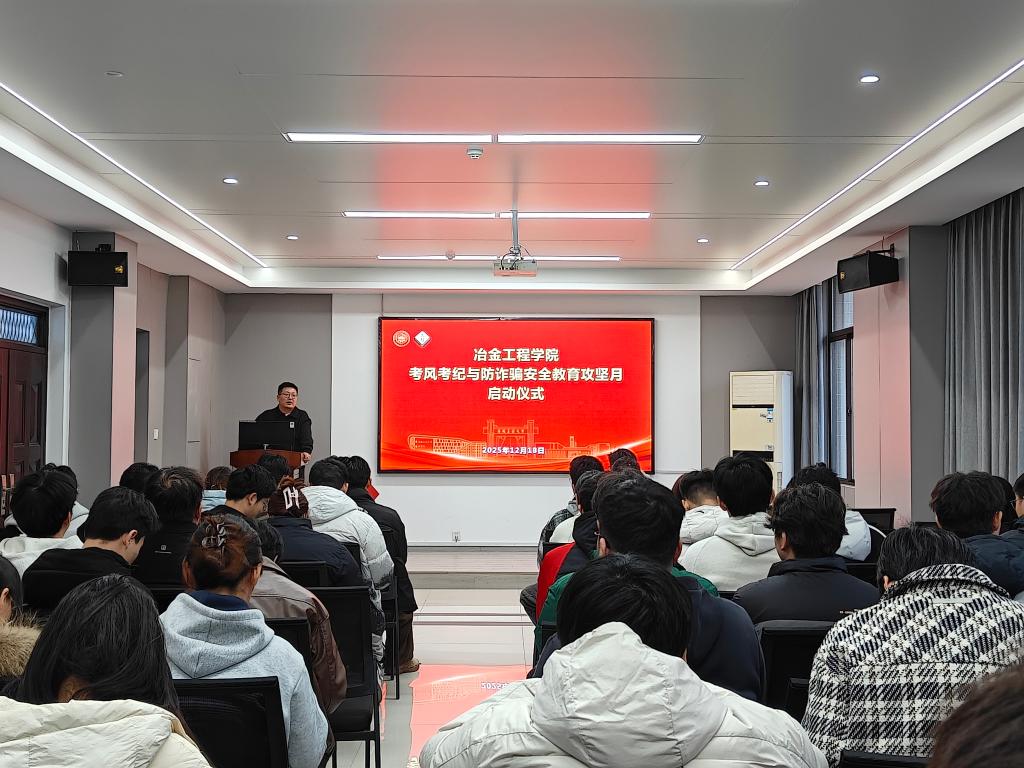 在冶金楼南302举行“考风考纪暨防诈骗安全教育”攻坚行动启动仪式。学院学工队伍、各班级学生代表及学生骨干参加了启动仪式。
