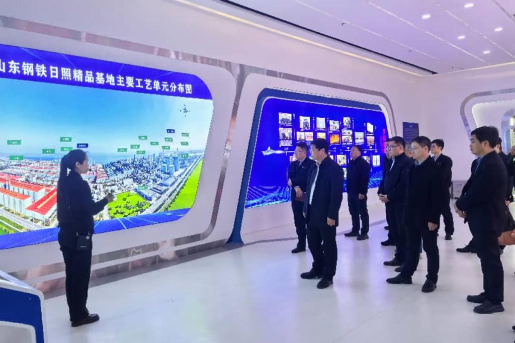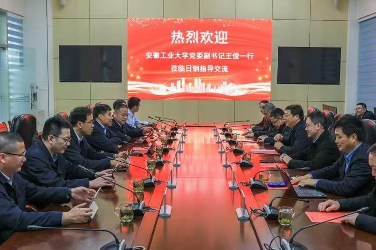 王俊一行实地参观了日照钢铁数智集控中心和山钢集团日照公司展厅。王俊代表学校向日照钢铁控股集团有限公司授予“安徽工业大学大学生就业基地”牌匾。