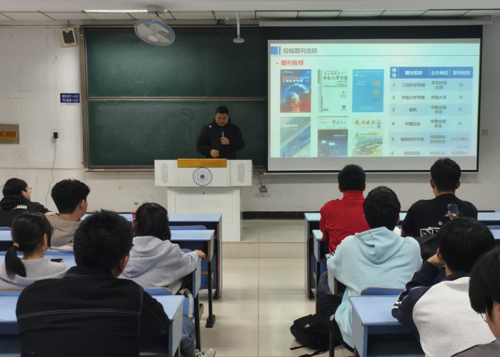 本期训练营首场专题讲座特邀学院博士研究生赵贺喜、范春龙担任主讲嘉宾。他们结合自身丰富的科研实践经历,分别以《科技论文写作及投稿》和《专利基础知识》为题,从科研选题、高质量论文撰写、专利申请与保护等方面进行了详细讲解。