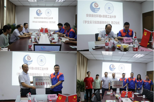 王海川院长首先向企业介绍了学院发展历史、专业设置、师资队伍、学生培养以及我校资源循环科学与工程专业发展等基本情况。安徽首创环境控股有限公司常务副总裁杨长招对王海川一行的到来表示热烈欢迎,并介绍了企业的生产现状、技术瓶颈、发展规划及复合型人才需求情况。双方就产学研合作、学生就业及实习基地建设等具体事项进行了探讨,达成了初步的合作意向。会上,王海川代表学校与安徽首创环境常务副总裁杨长招签订了资源循环科学与工程专业“实习实践合作基地建设协议”,并共同为安徽工业大学“实习实践基地”揭牌。会后,在企业负责人的陪同下,一行人参观了企业的生产车间。