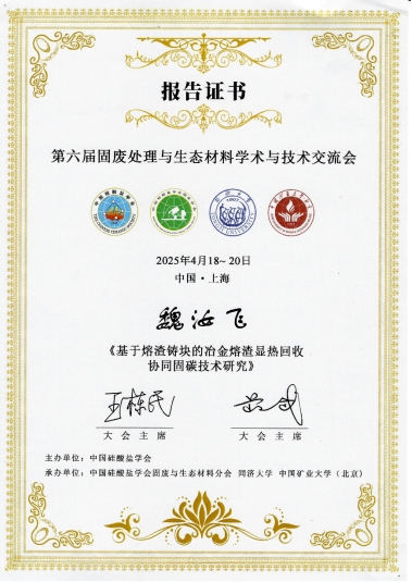 本次大会有效搭建了产学研用多方协同的高水平交流平台,促进了跨学科融合与技术成果转化,彰显了固废资源化在支撑“双碳”战略、推动建材绿色低碳转型中的关键作用。通过参与本次大会,学院教师、研究生与同行之间的合作与交流得到了进一步的加强。以此学术研讨会为新的起点,学院教师将继续专注固废资源化技术的研究,致力于推动学科专业的发展,实现新的突破和提升。(撰稿:魏汝飞 审核人:罗梦婷 夏云进 赵卓)