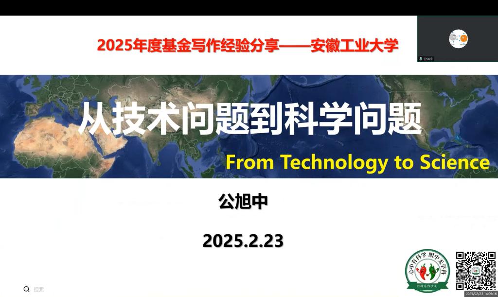 特别邀请中国科学院过程工程研究所公旭中教授,举办了一场题为“从技术问题到科学问题”的国家基金申报辅导讲座。讲座吸引了学院60余名2025年国家基金申报教师及科研骨干线上参与,由副院长赵卓教授主持。