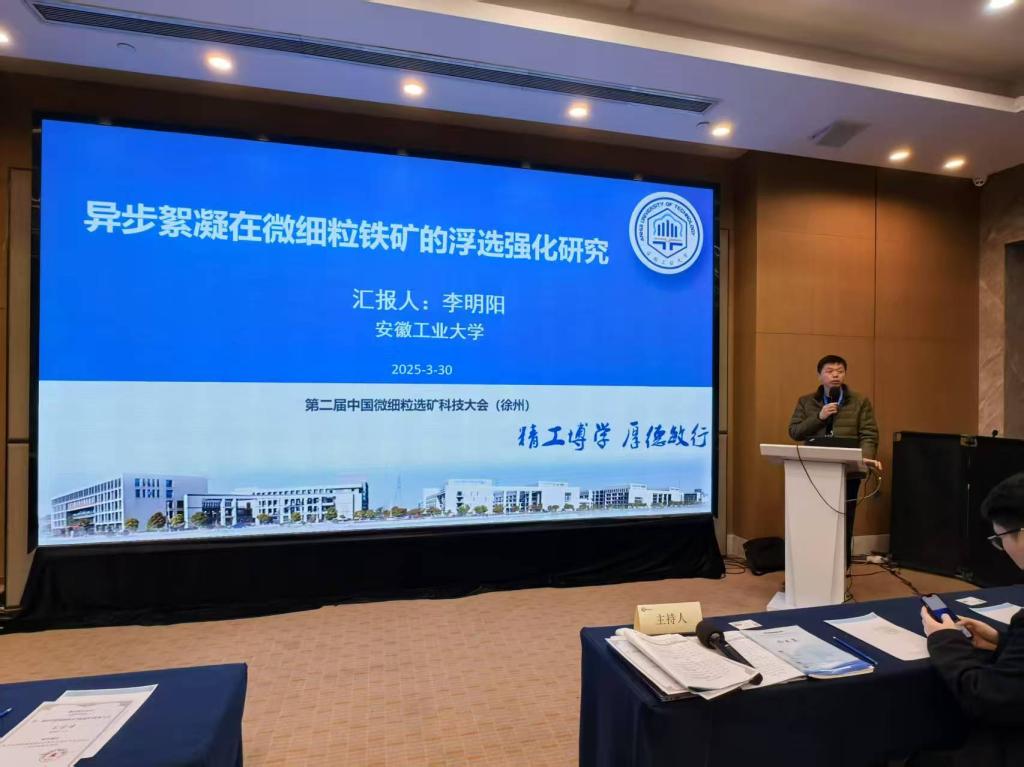 资源加工与循环利用系李明阳副教授参会,并在“微细粒难选矿物选矿药剂技术与应用”论坛做了题为“异步絮凝在微细粒铁矿的浮选强化研究”的邀请报告,介绍了课题组近年来在复杂难选铁矿石综合利用方面的研究进展,引起参会专家学者的广泛交流与讨论,提升了我校在微细粒选矿领域的影响力。(撰稿:吕宁宁 审核:罗梦婷 余正伟 赵卓)
